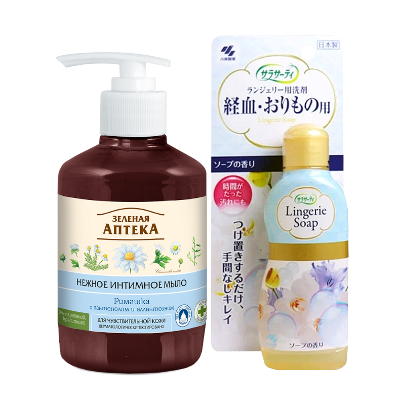 Bộ đôi Dung dịch vệ sinh phụ nữ Zelenaya Apteka Hoa Cúc + Nước giặt đồ lót Lingerie chăm sóc vệ sinh vùng kín