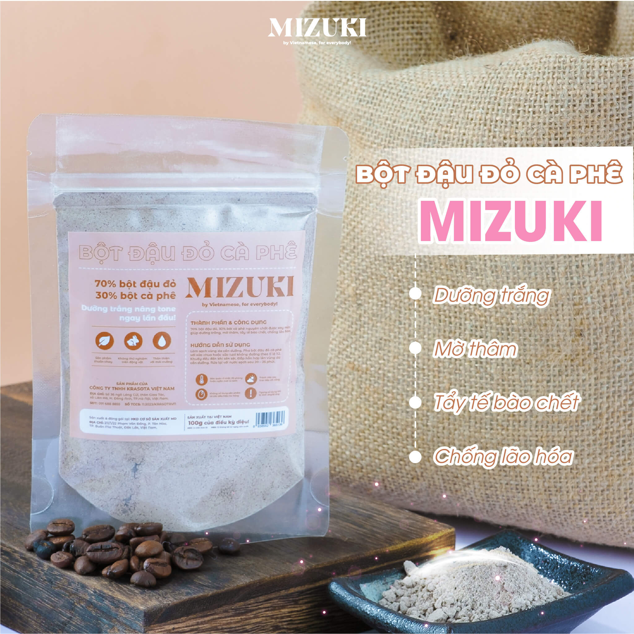 Bột Đậu Đỏ Cà Phê Nguyên Chất MIZUKI dưỡng sáng da, mờ thâm, tẩy tế bào chết, chống lão hóa