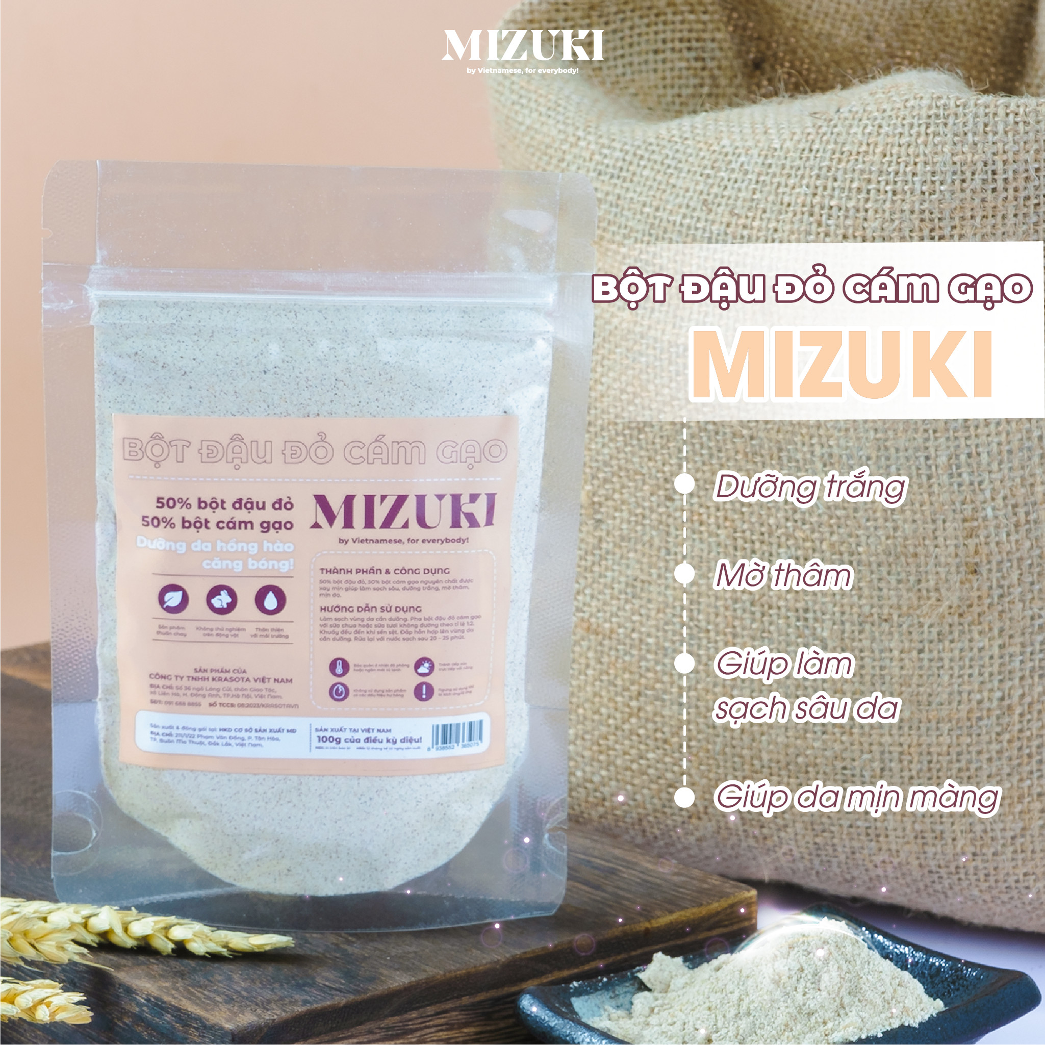 Bột Đậu Đỏ Cám Gạo Nguyên Chất MIZUKI dưỡng sáng da, mờ thâm, tẩy tế bào chết, chống lão hóa
