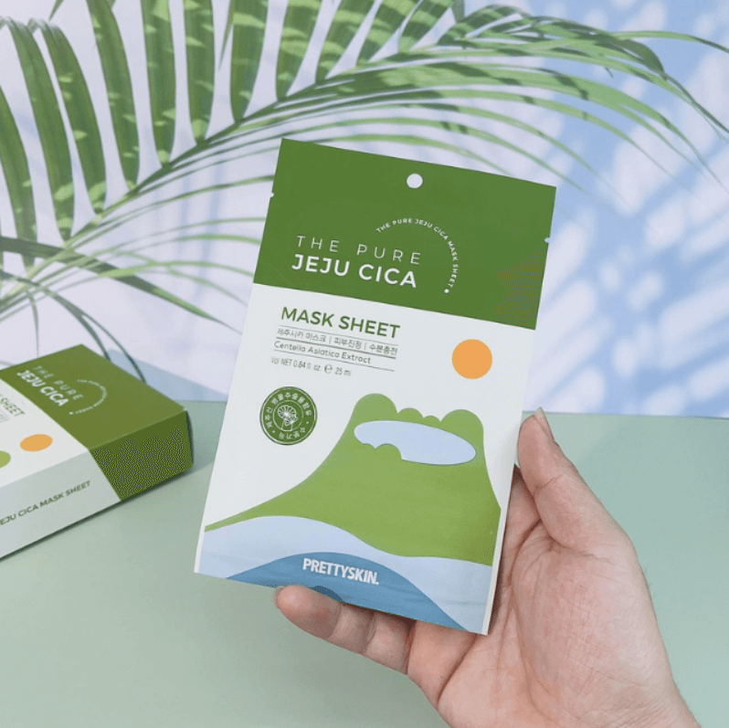 [Chính Hãng] Mặt Nạ Rau Má THE PURE JEJU CICA PRETTYSKIN Hàn Quốc Cấp Ẩm, Dưỡng Trắng & Se Khít Lỗ Chân Lông 25ml