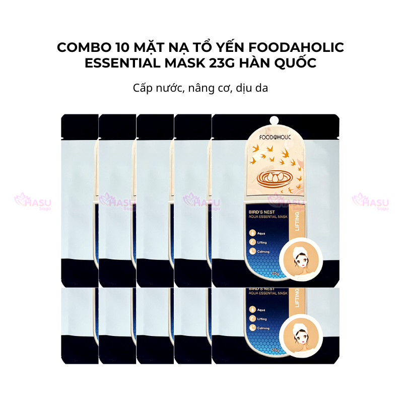 Combo 10 mặt nạ tổ yến cấp nước, nâng cơ Foodaholic Essential Mask 23g Hàn Quốc