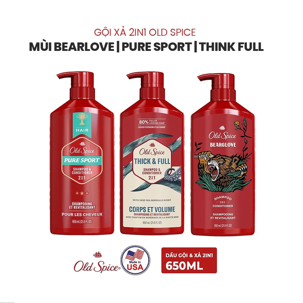 Dầu Gội Xả 2in1 Old Spice Thick & Full - Cho Mái Tóc Trông Dày Hơn 80% (650ml)