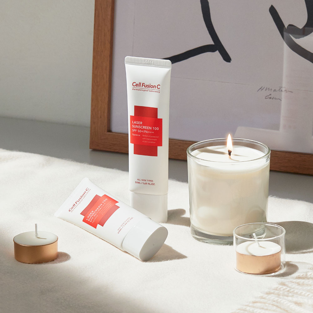 - Laser Suncreen (đỏ/trắng): SPF50+/PA+++ dành cho da nhạy cảm, da sau lăn kim, laser, da mụn và mọi loại da. Chất kem màu trắng, nâng tone ít, mùi dưỡng thể