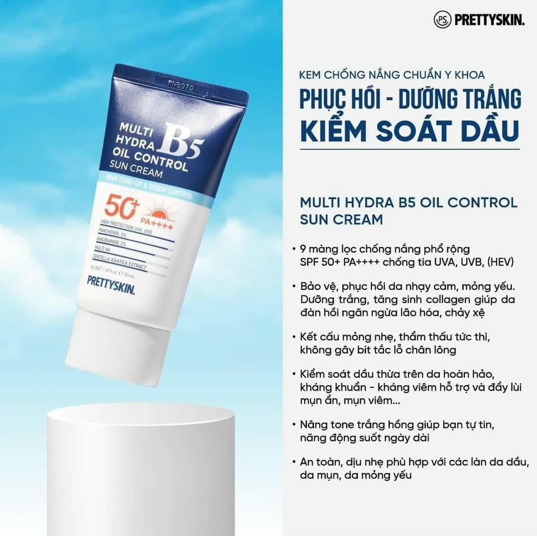 Kem Chống Nắng Pretty Skin Multi Hydra B5 Oil Control Sun Cream SPF 50+/PA++++ - Phục Hồi Dưỡng Trắng Dành Cho Da Dầu