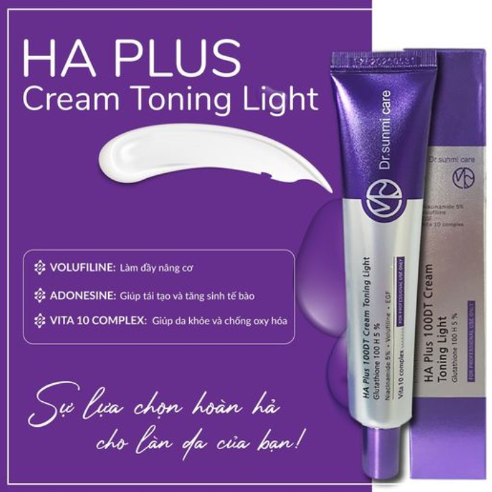 Kem Dưỡng Trắng Da, Phục Hồi Da Dr. Sunmi Care HA Plus 100DT Cream Toning Light Hàn Quốc 50ml