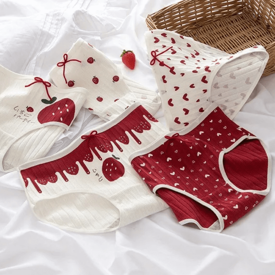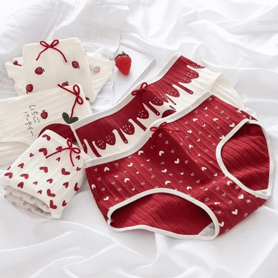 [Mã S15] Quần Lót Nữ Cotton Gân Tăm Dâu Tây Đỏ, Quần Chip Nữ Chống Vi.êm Mềm Mại Thoáng Mát