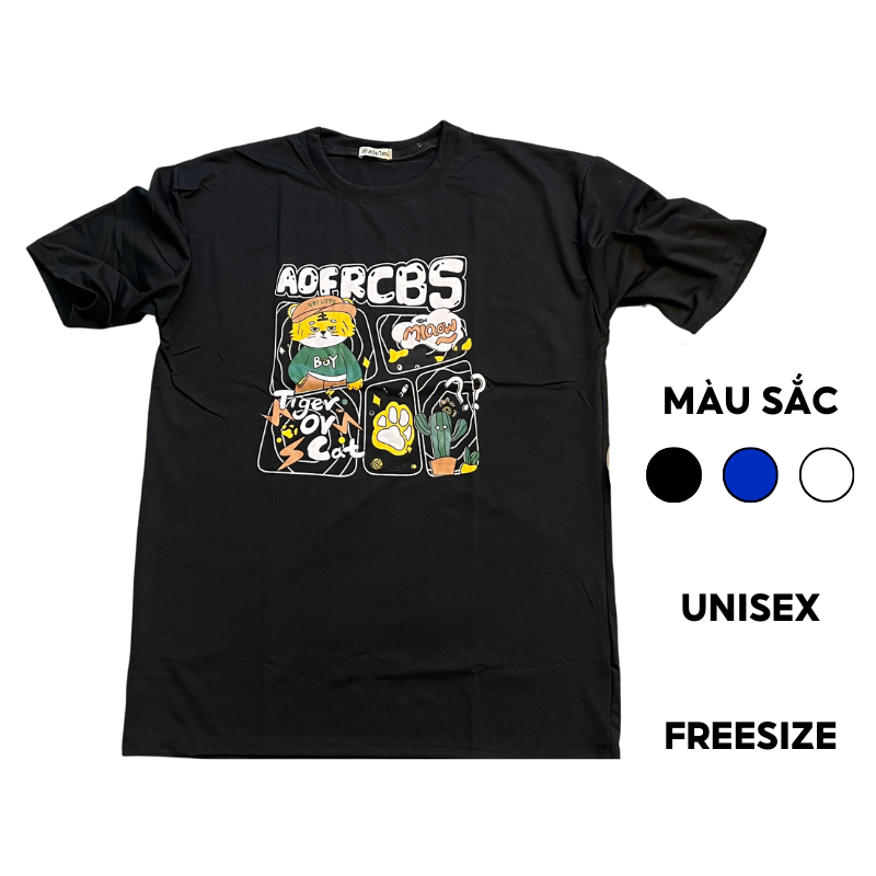MS001 Áo Thun Unisex Nam Nữ, Áo Thun Form Rộng Thời Trang In Hình Hoạt Hình Dễ Thương Freesize
