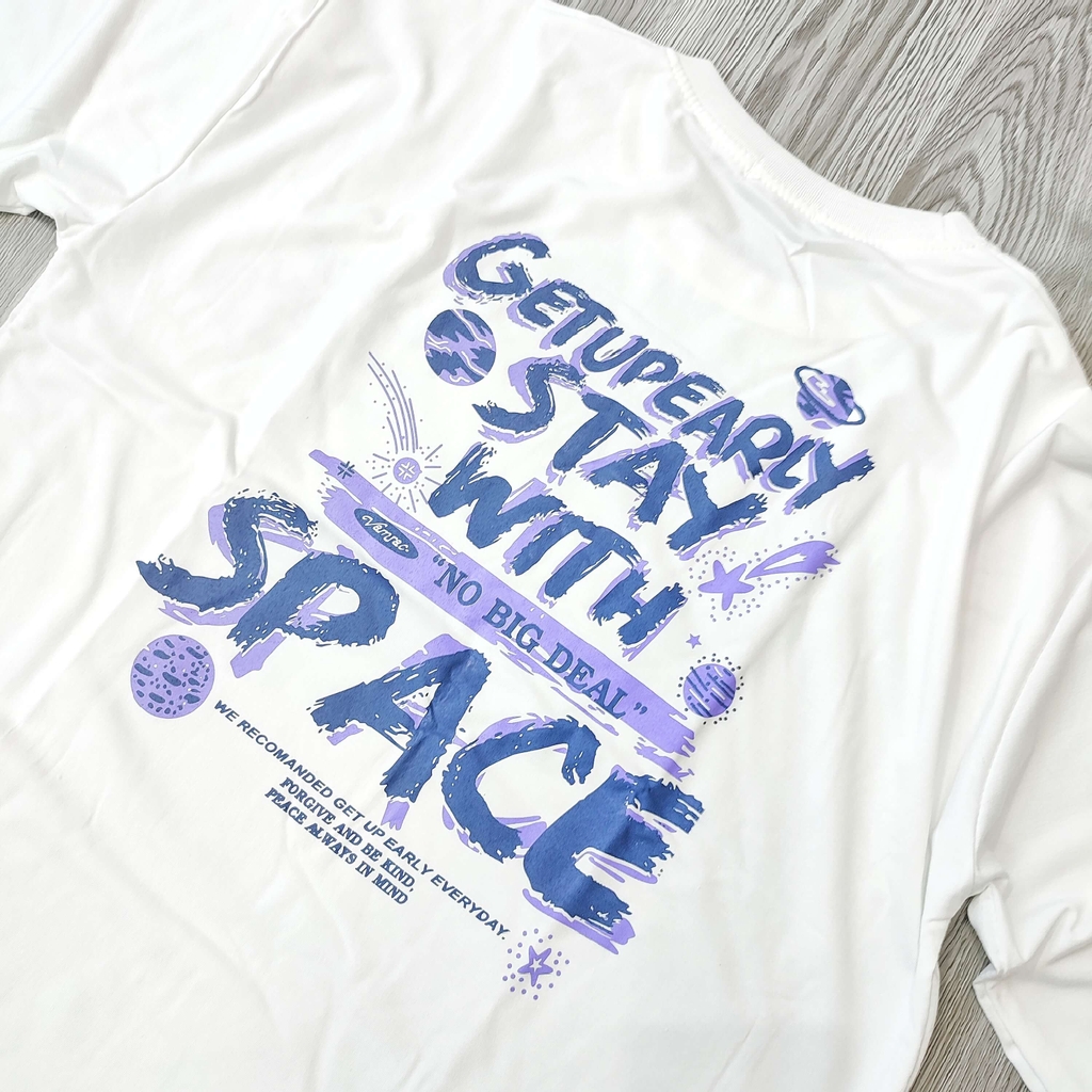MS023 Áo Thun Unisex Nam Nữ, Áo Thun Form Rộng Thời Trang In Chữ GET UP EARLY Dễ Thương Freesize