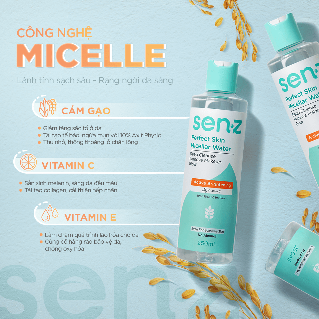 Nước Tẩy Trang SenZ Perfect Skin Micellar Water 250ml - Chiết Xuất Cám Gạo Lành Tính Giúp Da Sáng Rạng Rỡ Tự Nhiên