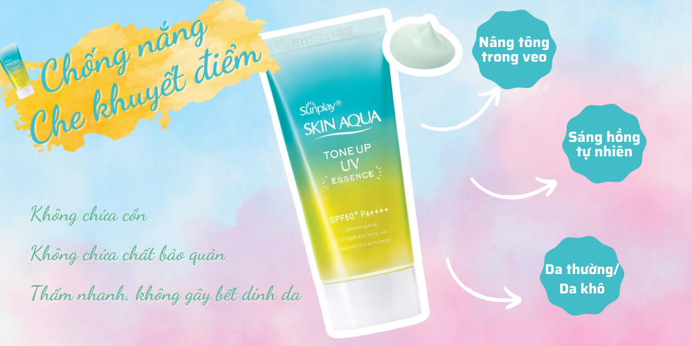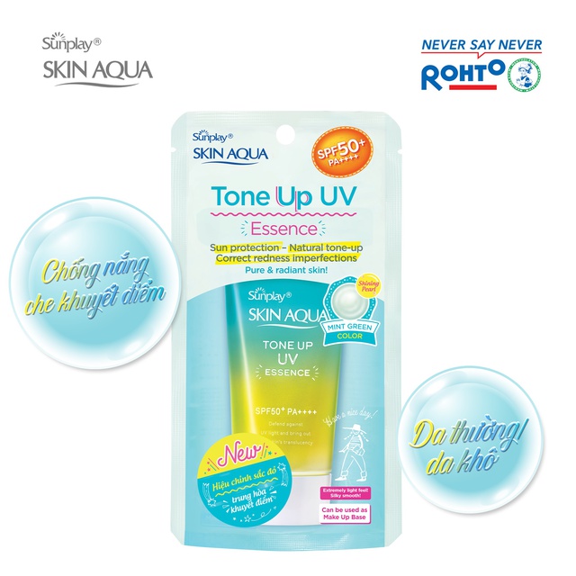 Tinh chất chống nắng Sunplay Skin Aqua Tone Up UV Essence Mint Green là sản phẩm được bình chọn #1 Kem chống nắng tốt nhất năm 2018 bởi Cosme (trang thông tin mỹ phẩm hàng đầu Nhật Bản), vừa có tác dụng chống nắng vừa giúp hiệu chỉnh sắc da sáng hồng.