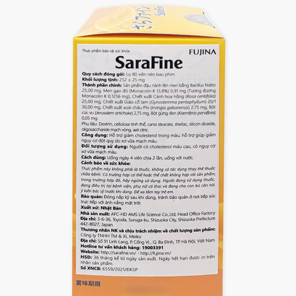 Viên Uống Hỗ Trợ Hạ Mỡ Máu FUJINA SARAFINE 80 Viên