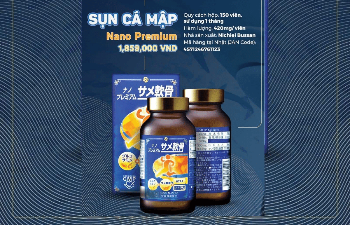 Viên Uống Sụn Vi Cá Mập Nano Premium Nichiei Bussan Nhật Bản 150 Viên